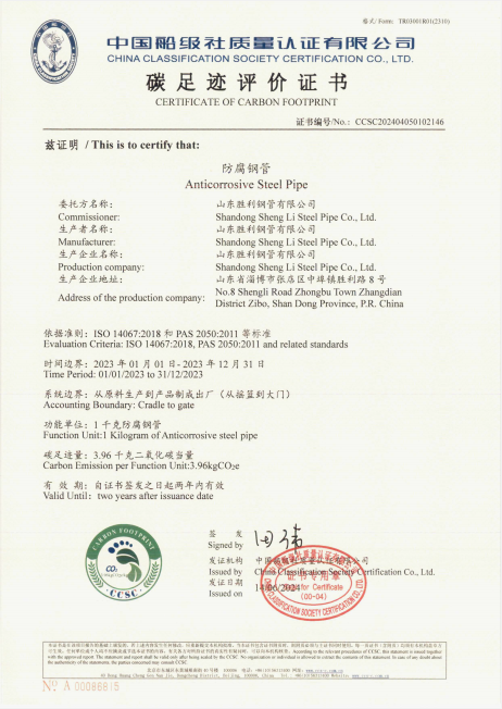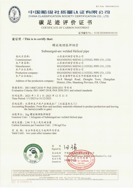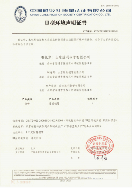 山東勝利順利通過螺旋縫埋弧焊接鋼管和防腐鋼管的碳足跡、Ⅲ型環(huán)境聲明評(píng)價(jià)認(rèn)證