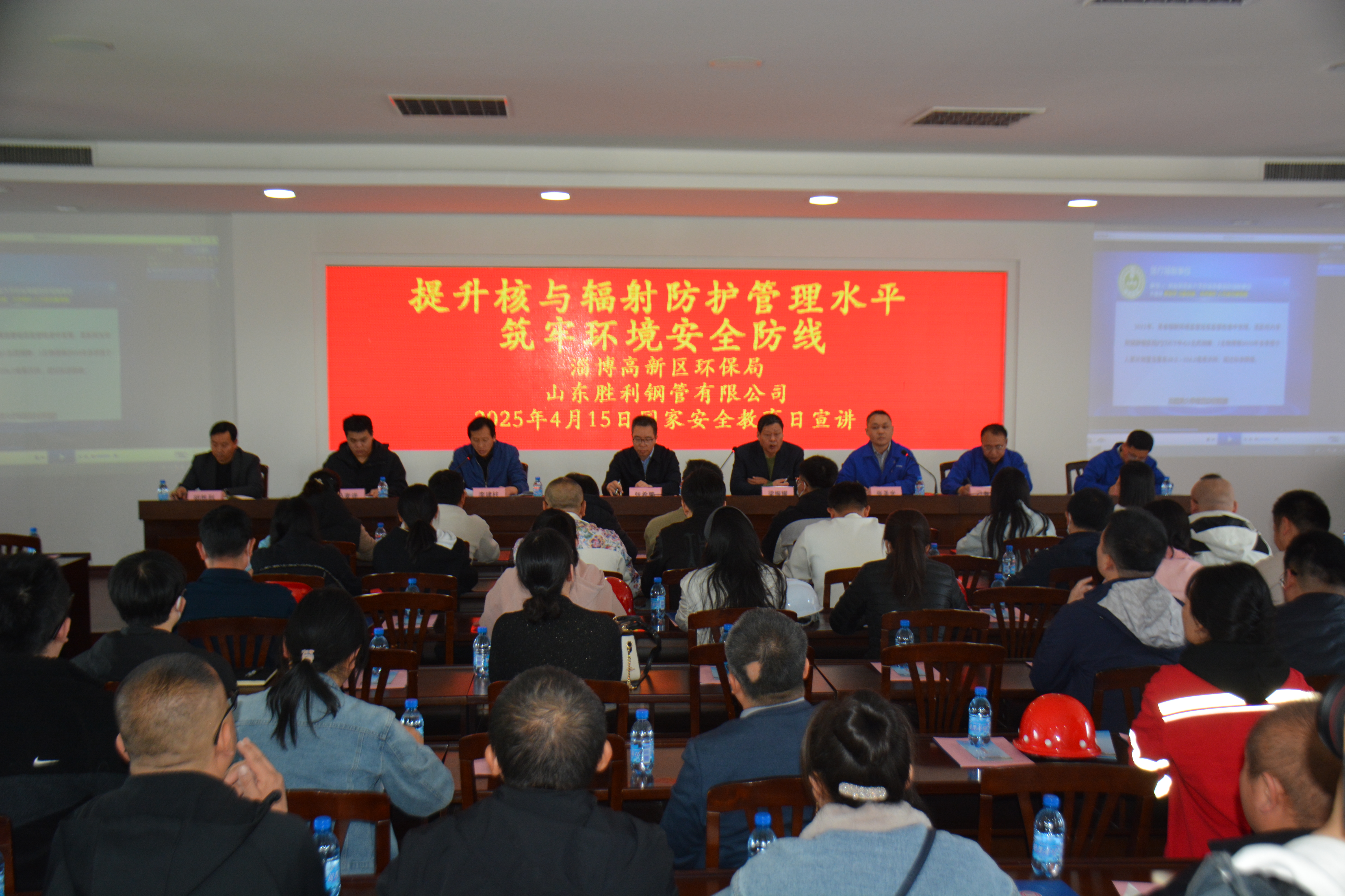??2025年4月15日,在第十個(gè)全民國家安全教育日之際,由山東勝利鋼管有限公司承辦的淄博高新區(qū)環(huán)保局"提升核與輻射防護(hù)管理水平、筑牢環(huán)境安全防線"主題宣傳活動(dòng)獲得圓滿成功。淄博市環(huán)保局領(lǐng)導(dǎo)、高新區(qū)環(huán)保局領(lǐng)導(dǎo)及高新區(qū)67家核技術(shù)利用企業(yè)代表共80余人參加了本次主題宣傳活動(dòng)。