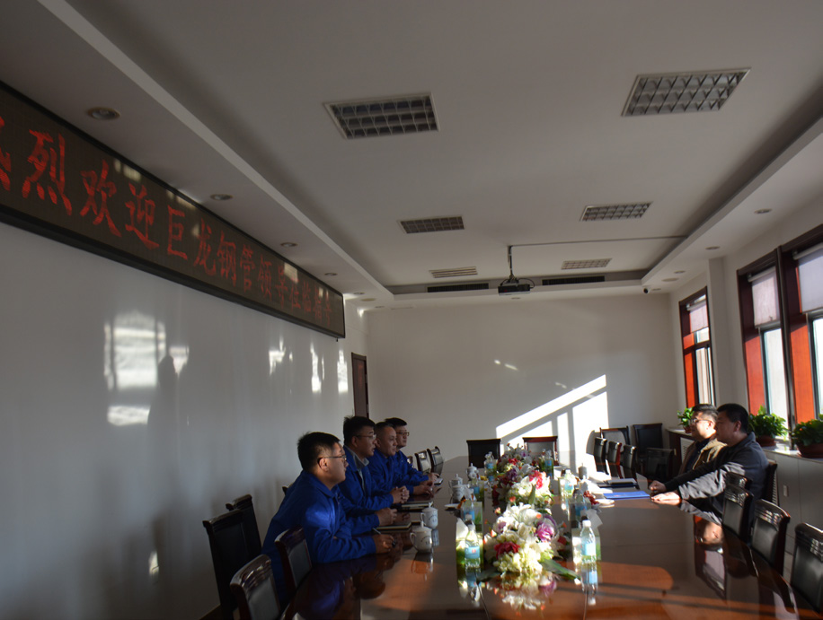 ?12 月 3 日,巨龍鋼管有限公司董事長兼總經(jīng)理吳亞東率領(lǐng)銷售管理團(tuán)隊(duì)到訪山東勝利。公司董事長趙增強(qiáng)、總經(jīng)理張圣光及相關(guān)業(yè)務(wù)負(fù)責(zé)人熱情迎接了來訪貴賓。雙方圍繞市場(chǎng)趨勢(shì)、行業(yè)發(fā)展和多領(lǐng)域戰(zhàn)略合作等核心議題,進(jìn)行了深入而友好的座談交流,并實(shí)地考察了預(yù)精焊分廠。